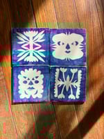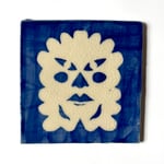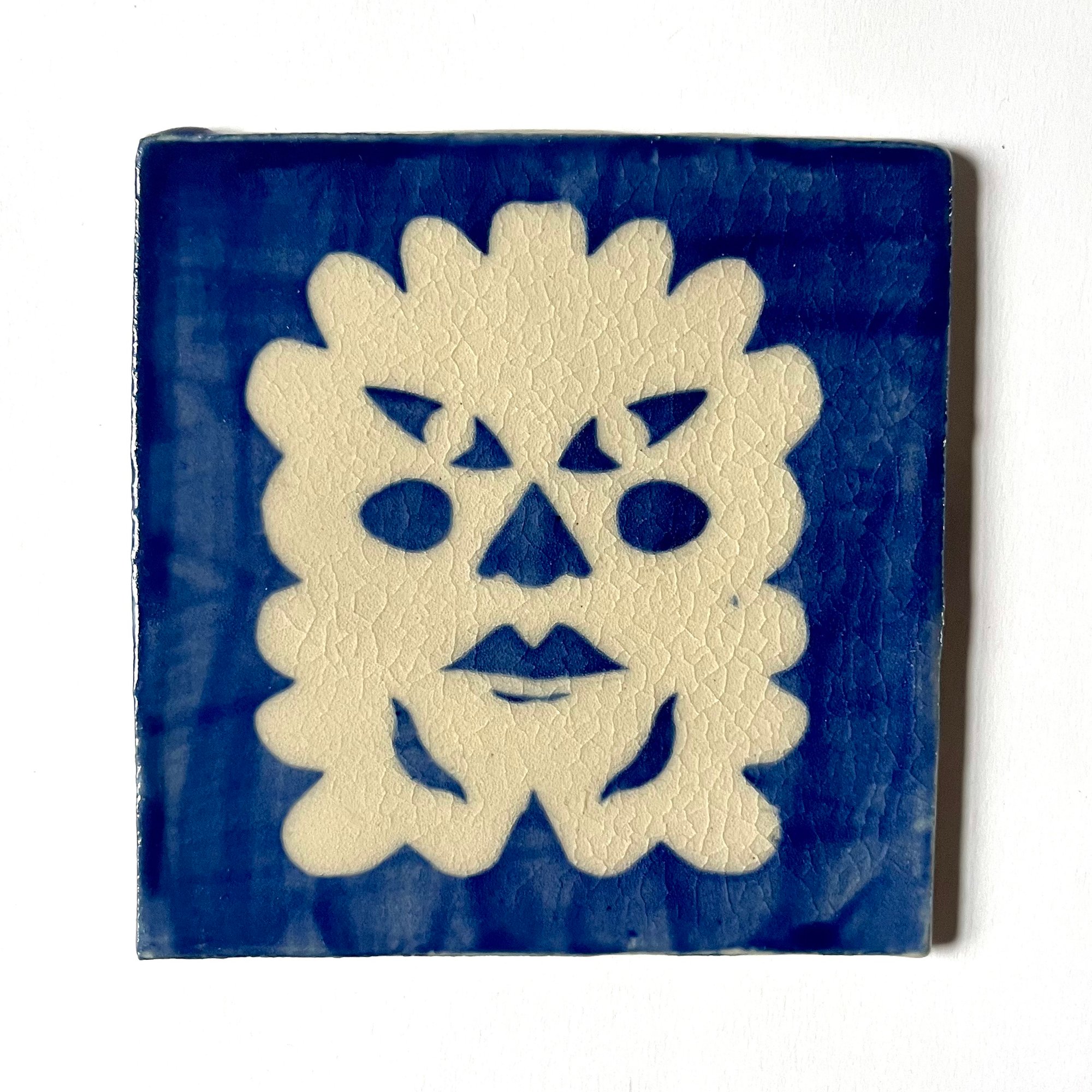 One of a kind 4"x4" stoneware wall tile, made using a paper slip-resist technique. Some slight warping may be present.