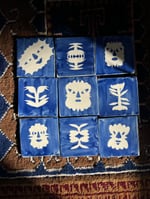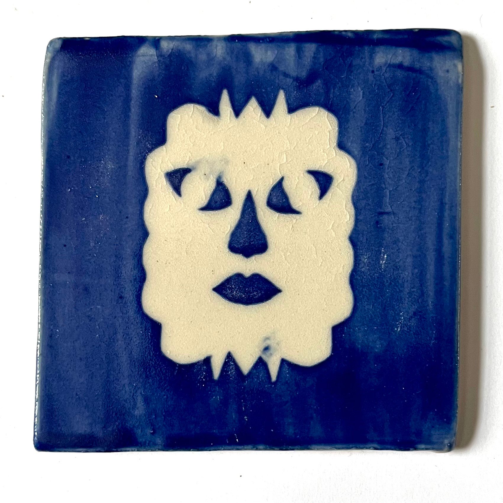 One of a kind 4"x4" stoneware wall tile, made using a paper slip-resist technique. Some slight warping may be present.